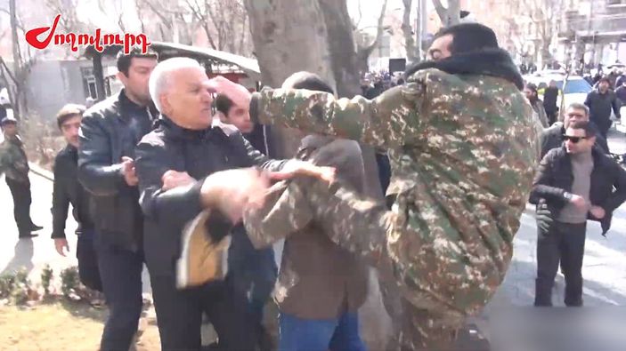 Dağlık Karabağ hezimeti sonrası Paşinyan'ın istifasını isteyenler de aynı bölgede toplanınca gerginlik yaşandı.