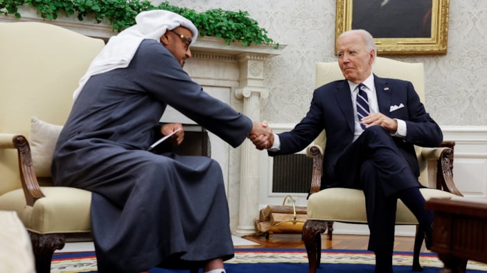 ABD Başkanı Joe Biden ile Birleşik Arap Emirlikleri Devlet Başkanı Şeyh Muhammed bin Zayed Al Nahyan ile Beyaz Saray'da bir araya geldi. BAE, ABD'nin "önemli savunma ortağı" olarak tanındı.