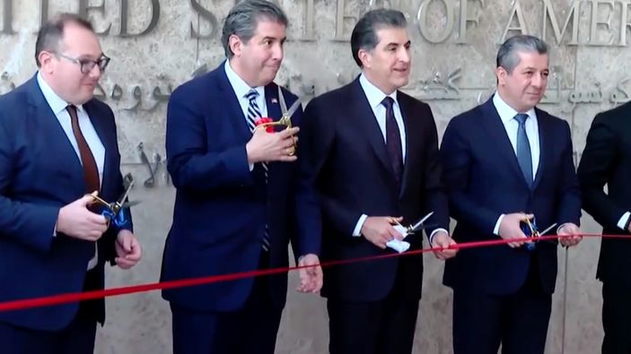 ABD Dışişleri Bakanı Yardımcısı Michael Rigas, Kürt liderlerle birlikte 'dünyanın en büyük Amerikan konsolosluğu' olarak planlanan, Erbil–Şaklava yolu üzerinde 206 bin metre karelik alana yapılmış binanın açılış törenine katıldı. Açılışın görüntüleri, Erbil merkezli Rudaw gazetesi tarafından paylaşıldı.