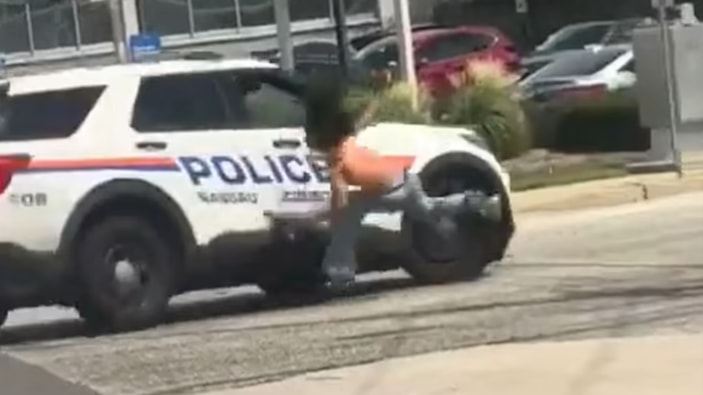 ABD'de aksiyon dolu an: Polis, eli silahlı kadına aracıyla çarptı