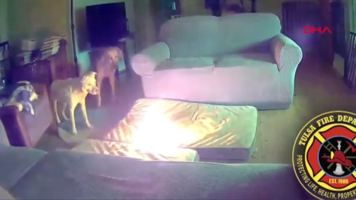 Tlsa eyaletinde evdeki taşınılabilir bataryayı ısırarak yangın çıkartan köpeğin görüntüleri itfaiye ekipleri tarafından paylaşıldı.