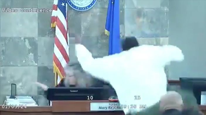 ABD'nin Nevada eyaletinde görülen bir dava sırasında sanık, kürsünün üzerinden uçarak kadın hakime saldırmıştı. O sanığa 26 yıl hapis cezası verildi.