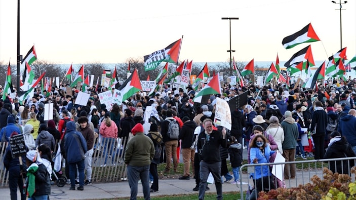 Şikago kentinde bir araya gelen göstericiler Filistin'le dayanışma mesajları verdi.