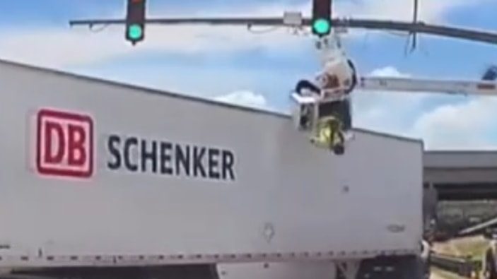 ABD’nin Louisiana eyaletinde seyreden bir tır, sepetli vinç üzerinde trafik ışığı bakımı yapan elektrik işçisine çarptı. Şans eseri can kaybı yaşanmayan kaza, anbean araç kamerasına yansıdı.