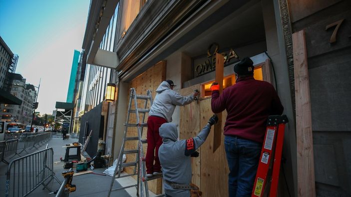 Seçim günüyle ilgili endişeler sadece Beyaz Saray'la sınırlı değil. Ülke genelinde iş yerleri ve mağazalar, çıkması muhtemel olaylara karşı tahta plakalarla kapatıldı.