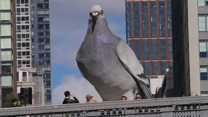 Kolombiya asıllı sanatçı Ivan Argote'un, New York'ta bulunan 'Dinozor' isimli 5 metre yüksekliğindeki güvercin heykeli görenleri şaşırtıyor.