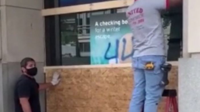 Bazı iş yeri sahipleri, gösteriler sırasında yağmalamalara karşı hummalı bir çalışma yürüttü.