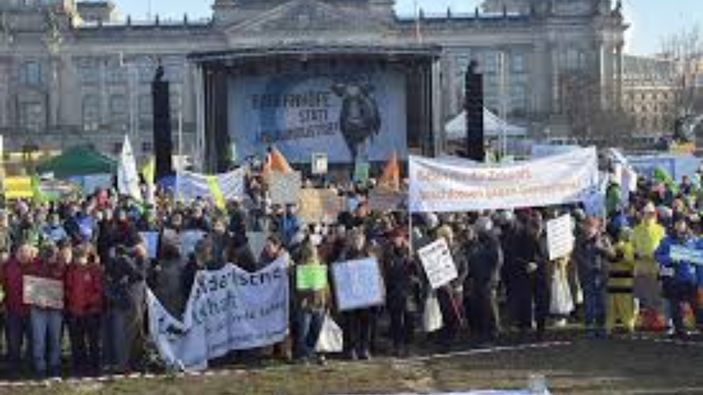 Almanya'da binlerce çiftçi Federal Meclis Binası önünde toplandı.