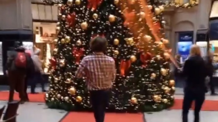 Çevreci grup, protesto sırasında yeni yıl için kurulan Noel ağacına turuncu boya püskürttü.