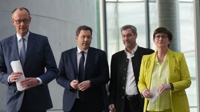 CDU Genel Başkanı Friedrich Merz, CSU lideri Markus Söder ve SPD’nin eş genel başkanları Lars Klingbeil ile Saskia Esken’in liderliğindeki müzakere heyetleri, koalisyon görüşmelerinin son aşamasını tamamlamak üzere Berlin’deki CDU Genel Merkezi’nde bir araya geldi.