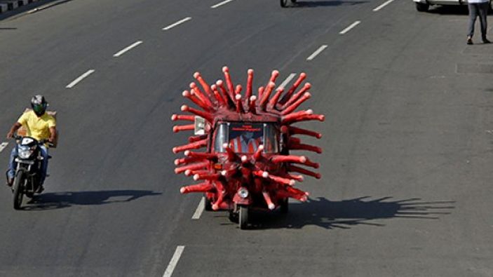 Aracını koronavirüse benzeten Hindistanlı