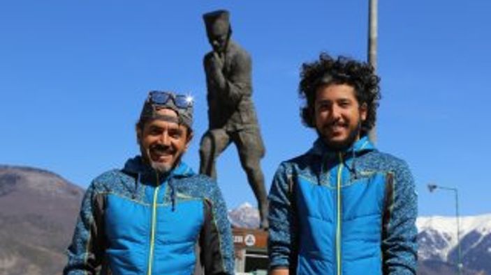 Sporcular Cengiz Koçak ve Ferdi Toy, 2 bin rakımlı Atabarı Kayak Merkezi ile Türkiye'nin en büyük Atatürk heykelinin bulunduğu Atatepe arasında uçuş planladı.