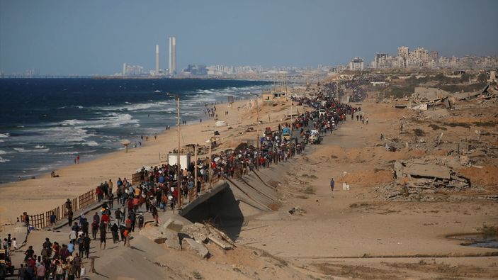 Gazze'de ateşkesin yürürlüğe girmesinin ardından güney bölgelerindeki zorla yerinden edilen Filistinliler, kuzeydeki evlerine dönmek için harekete geçti.