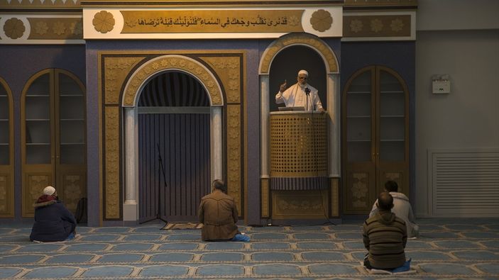 Yunanistan'da 14 yıllık plan ve inşa sürecinin ardından 2 Kasım Pazartesi ibadete açılan Atina Camii'nde Müslümanlar, ilk cuma namazı için saf tuttu.