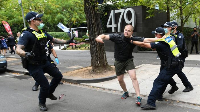 Melbourne’deki gösterilerde bazı gruplar ve polis arasında gerginlik yaşandı. Polis göstericilere göz yaşartıcı gazla müdahale etti. Birçok gösterici ise gözaltına alındı.