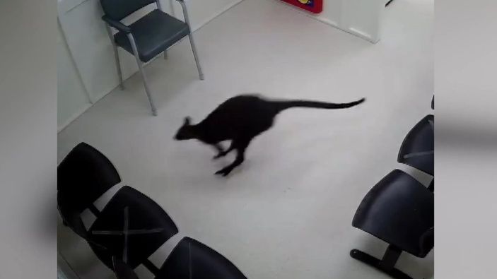 Yolunu kaybeden bir kangurunun hastaneye dalıp, içeride gezindiği anlar kameraya yansıdı.