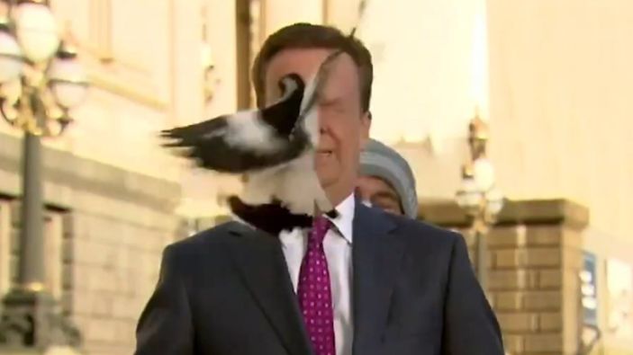 Canlı yayına çıkmasına az bir süre kalan muhabir, saksağanın saldırısına uğradı. Muhabir, kuşun yüzüne çarpmasıyla ilgili "Gözlerimi doğru zamanda kapattım" dedi.