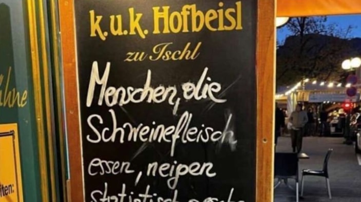 Yukarı Avusturya eyaletindeki turistik Bad Ischl kasabasında, bir restoranın girişinde bulunan İslam karşıtı ifadelerin yer aldığı tabela, tepkilere neden oldu.