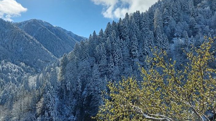 Rize'nin yüksek kesimlerine nisan ayında yağan kar, güzel görüntüler oluşturdu.