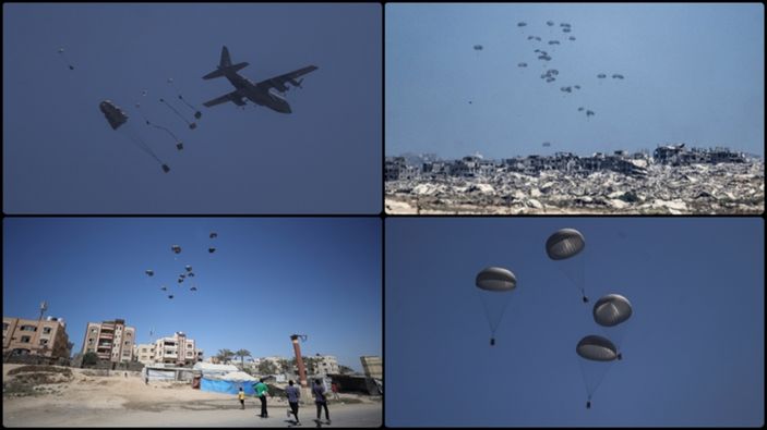 Birleşik Arap Emirlikleri (BAE) ve Ürdün, bazı Avrupa ülkelerinin desteğiyle, İsrail'in uyguladığı ambargo nedeniyle kıtlıkla boğuşan Gazze'ye havadan yardım malzemesi ulaştırdı.