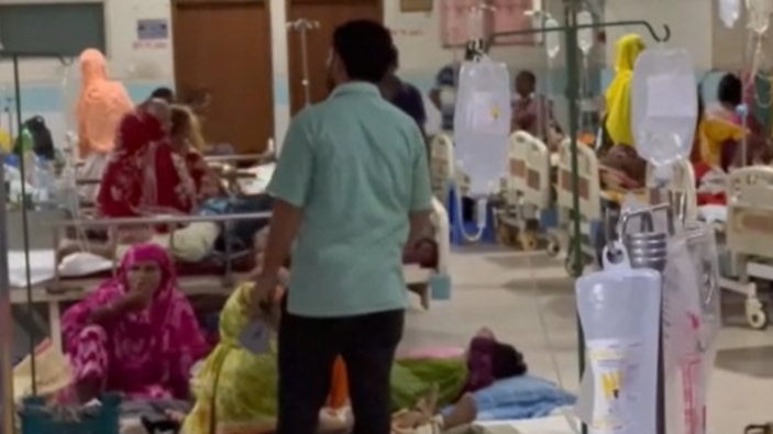 Dang humması salgını nedeniyle çoğu hastanenin kapasitesinin üzerinde hastaya hizmet verirken, hastaların hastanelerin koridorlarında yattığı görüldü.