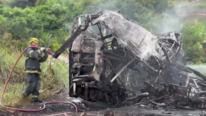 Brezilya'da yolcu otobüsü ile bir kamyonun çarpıştığı kazada 38 kişinin hayatını kaybettiği, 18 kişinin de yaralandığı bildirildi.