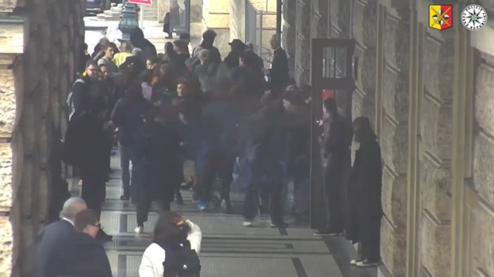 Görüntülerde, polislerin üniversite koridorunda arama yaptığı ve öğrencileri dışarı çıkarmaya çalıştığı anlar yer aldı.