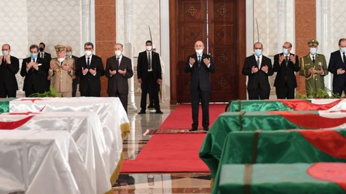 Fransa'nın başkenti Paris'teki bir müzede 170 yıldır tutulan, Cezayir'deki Fransız işgaline karşı 1830-1962 arasında gösterilen direnişin liderlerinden 24'ünün naaşlarından kalanlar, dün ülkeye iade edilmişti.