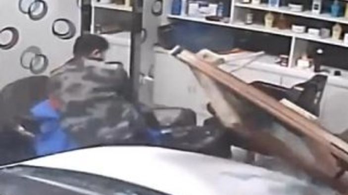 Güvenlik kamerasına yansıyan görüntülerde, berberin o sırada küçük bir çocuğu tıraş ettiği, aracın ise ön camı kırarak içeriye daldığı öğrenildi.