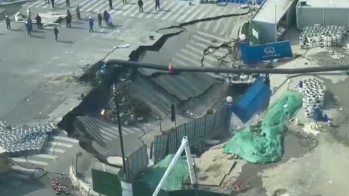 Çin'de metro inşaatı sırasında yol saniyeler içinde çöktü