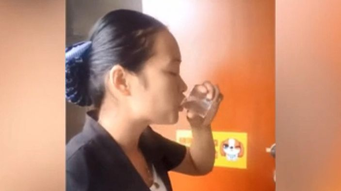 Çinli temizlik görevlisi tuvalet suyu içti VİDEO
