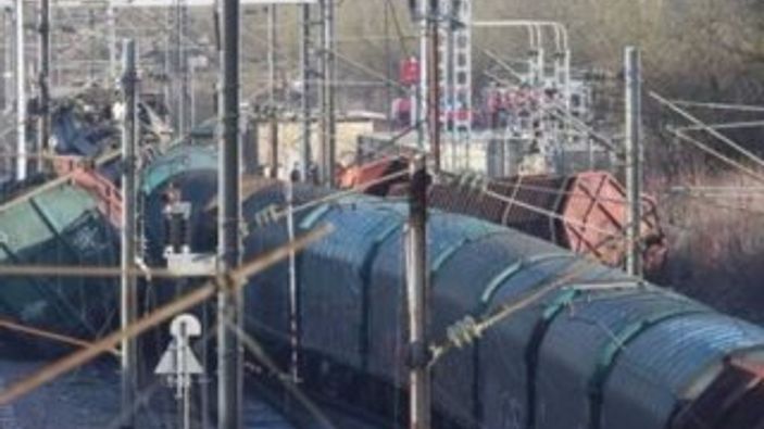 RÜZGARIN ETKİSİYLE YÜK TRENİNDEN DÜŞEN EŞYA KAZAYA NEDEN OLDU