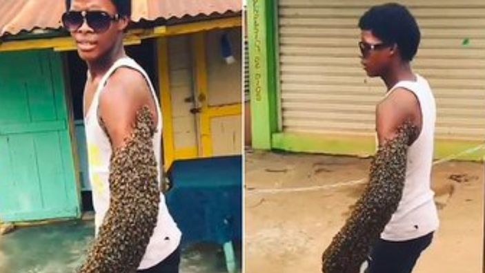Dominik Cumhuriyeti'nde bir arıcı, binlerce arıyı kolunda taşırken görüntülendi.