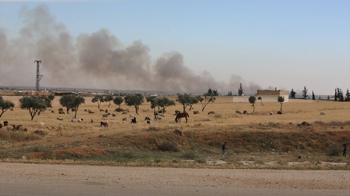 Dün gece saatlerinde rejim askerleri, tarım arazilerini ve evleri yakmaya başladı. Onlar, bizim evlerimiz, 7 yıldır giremiyoruz. Geldik burada evlerimizin, arazilerimizin yanışını izliyoruz.