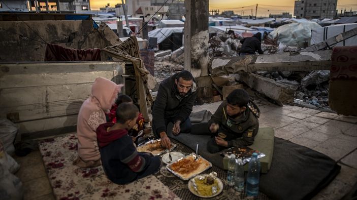 Enkaza dönen Gazze'de her köşe başında trajik görüntüler ortaya çıkıyor. Filistinliler, yıkıntıların arasında iftarlarını yapıyor.