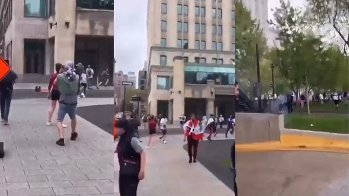 Montreal kentinde sokağa inen bir grup, polisle çatıştı. O anlar kameraya yansıdı.