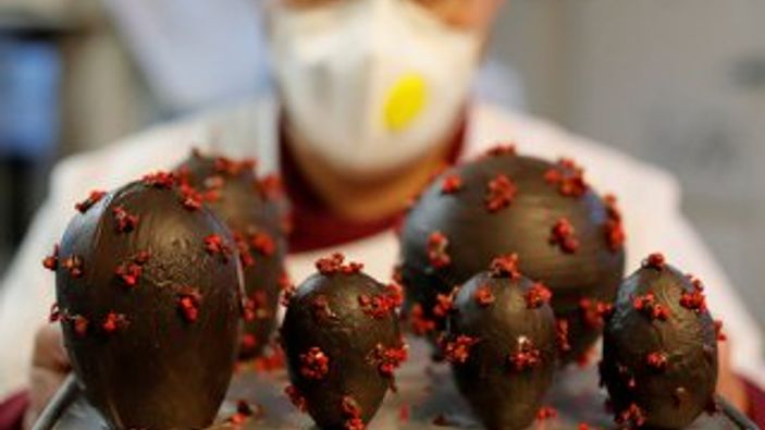 Fransa'nın Bretonya bölgesine bağlı Landivisiau şehrinde bir çikolatacı, koronavirüsün şeklini andıran çikolatalar üretti.