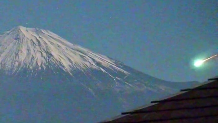 Japonya’nın simgelerinden Fuji Dağı semalarında beliren parlak bir meteor, geceyi aydınlattı. Kameralara yansıyan doğa olayı, kısa sürede sosyal medyada büyük ilgi gördü.