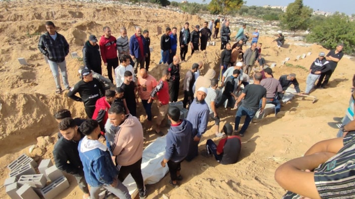 Gazze Şeridi’ndeki Filistinliler bir yandan hayatta kalmaya çalışırken bir yandan da kaybettikleri yakınlarını toplu mezar kazarak defnediyor.