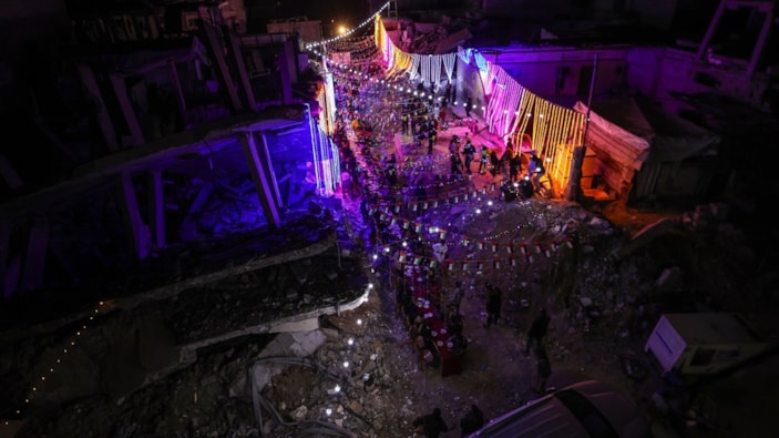 Filistinliler, yıkımın ortasında ramazan ayına özel yapılan ışıklı süslemelerle Ramazan'ın manevi atmosferini yaşadı.