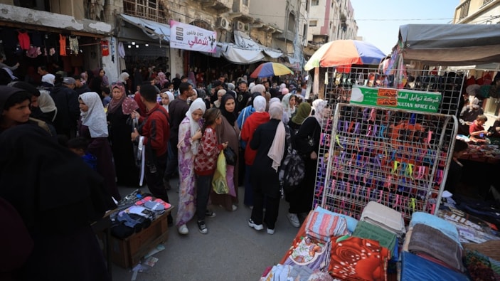 Bombardımanlar ve yıkımın gölgesinde hayata tutunmaya çalışan Gazzeliler, bayram öncesi alışveriş telaşına rağmen derin bir hüznü de yüreklerinde taşıyor.