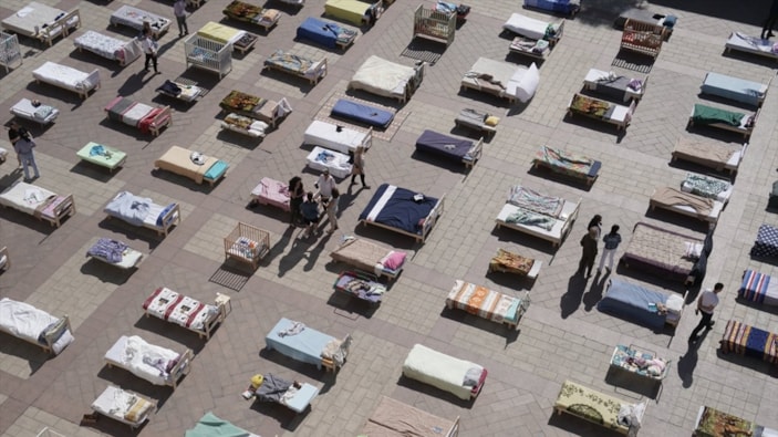 Hamas'ın düzenlediği saldırılar sırasında esir aldığı İsrailliler için Kudüs Belediyesi'nin önündeki meydana 230 boş yatak konularak sergi düzenlendi.
