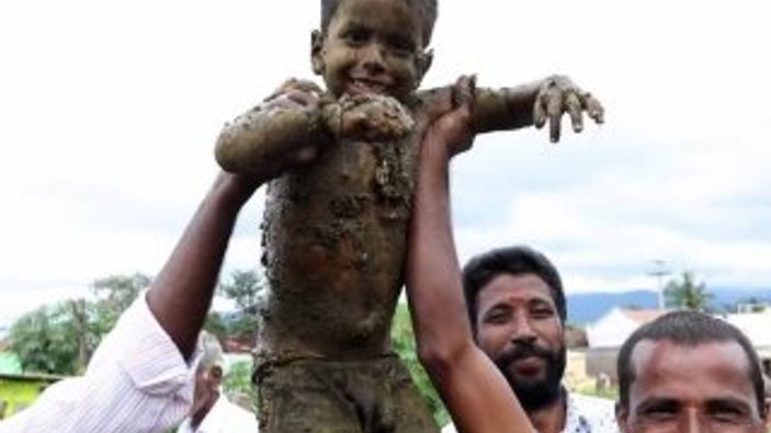 Güney Hindistan'da hastalıkların iyileşmesi ve refah getirmesi için inek gübresi yığınında erkeklerin olduğu bir savaş gerçekleştirildi.