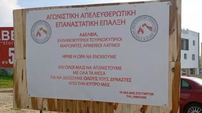 Güney Kıbrıs'ta Türkiye'ye karşı savaşmak amacıyla kurulan yeni terör örgütü, "Türk işgaline karşı uzun vadeli bir kurtuluş mücadelesi başlatıldığını" açıkladı. Örgütün bildirisi, Türk toplumunu hedef alan tehditler içeriyor.