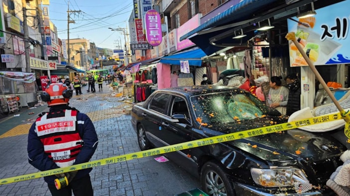 Güney Kore başkenti Seul'deki Mokdong Kaebi çarşısında yerel saatle 15.50 sıralarında bir araç kalabalığa daldı.