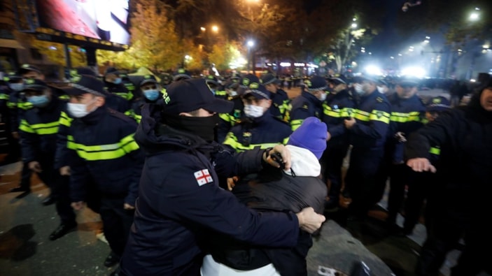 Gürcistan'da 26 Ekim'de düzenlenen ve iktidardaki Gürcü Hayali Partisi'nin galip çıktığı parlamento seçim sonuçlarını kabul etmeyen muhalifler, başkent Tiflis'te trafiğe kapattıkları bir caddede çadır kurmuştu.