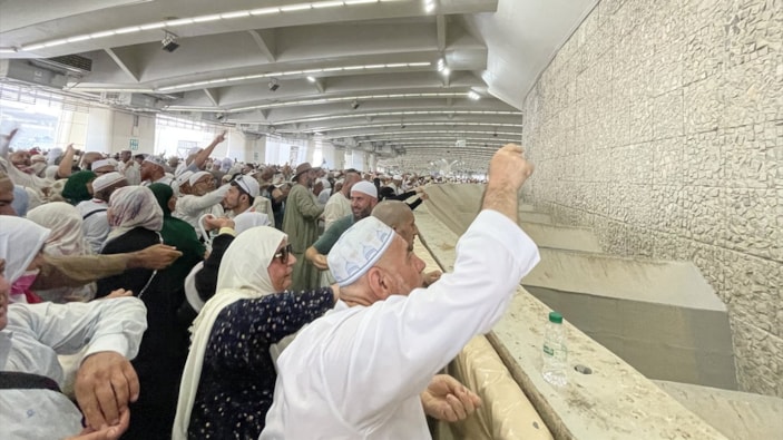 Kutsal topraklarda hac görevini yerine getiren yüz binlerce hacı, Kurban Bayramı'nın ikinci gününde de şeytan taşlamaya devam etti.