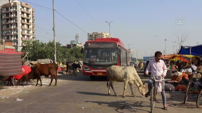 Başkent Yeni Delhi’de sütten kesildiği için sahipleri tarafından serbest bırakılan inekler, kentte trafik sorunlarına sebep oluyor.