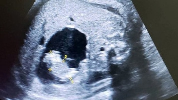 Başlangıçta normal seyreden hamilelikte önceki taramalarda herhangi bir sorun görülmedi. Ancak son kontrolde fetüsün karnında kemik içeren anormal bir yapı fark edildi.