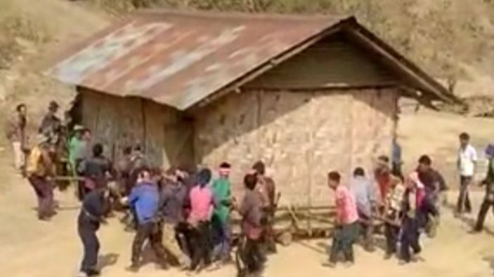 Nagaland eyaletine bağlı Yachem köyünde kayda geçen görüntülerde, köylüler kurdukları düzenekle evi kaydırdı.